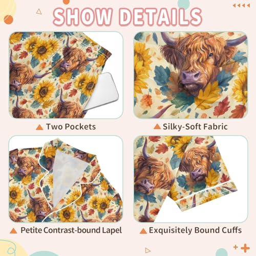 ALAZA Watercolor Yak Cow Sunflower Blossom Satin Pajamas Set Short Sleeve Button Down Sleepwear Summer Pjs 2 Piece 4