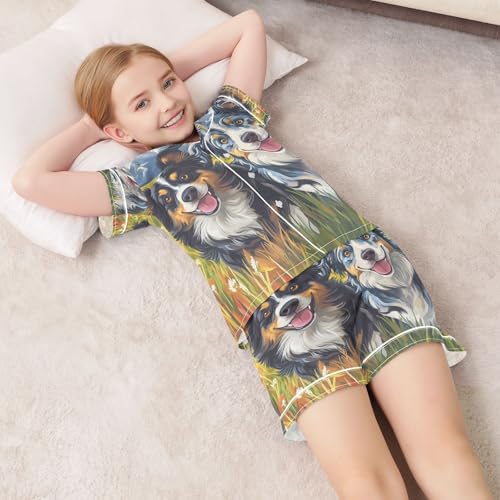 ALAZA Puppy Dog Leaf Mountain Satin Pajamas Set Short Sleeve Button Down Sleepwear Summer Pjs 2 Piece 6