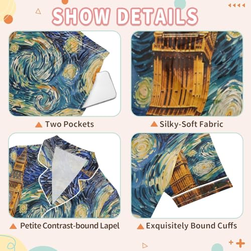 ALAZA Van Gogh Starry Sky Big Ben Satin Pajamas Set Short Sleeve Button Down Sleepwear Summer Pjs 2 Piece 7