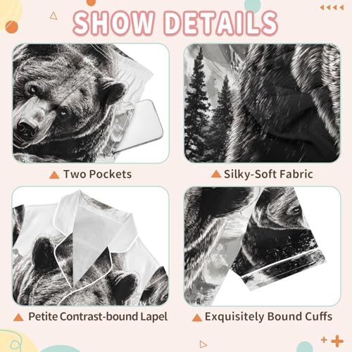ALAZA Bear Black White Satin Pajamas Set Short Sleeve Button Down Sleepwear Summer Pjs 2 Piece 4