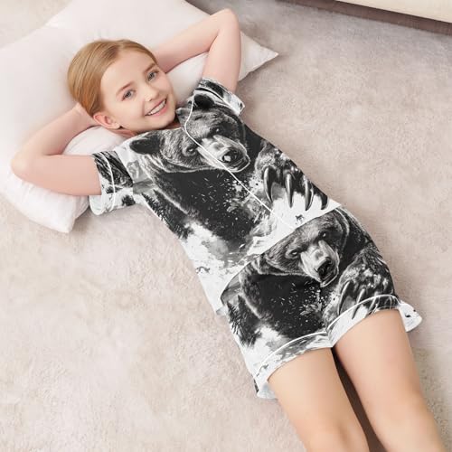 ALAZA Bear Black White Satin Pajamas Set Short Sleeve Button Down Sleepwear Summer Pjs 2 Piece 7