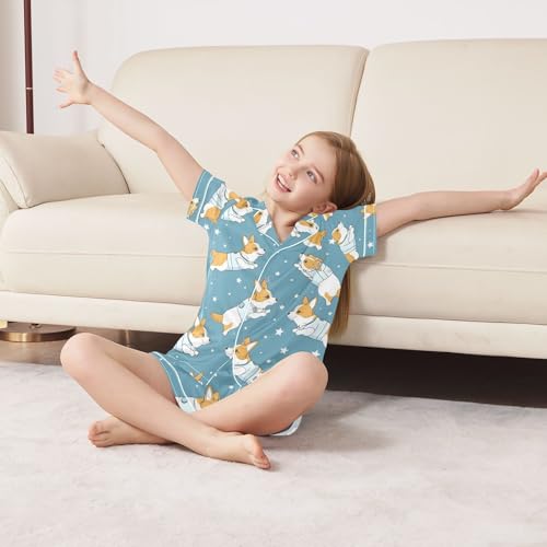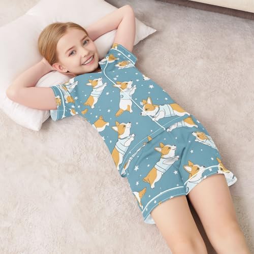 ALAZA Cartoon Dog Star Blue Pajamas Satin Pajama Set Short Sleeve Button Down Sleepwear 3