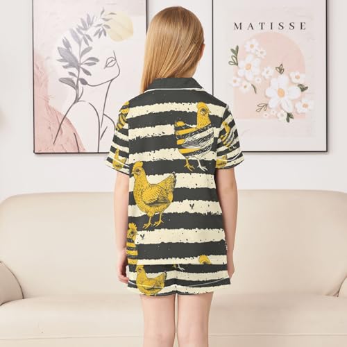 senya Chickens Wearing Stripes Satin Summer Pajama Sets Silk Short Sleeve Button Down Sleepwear 2