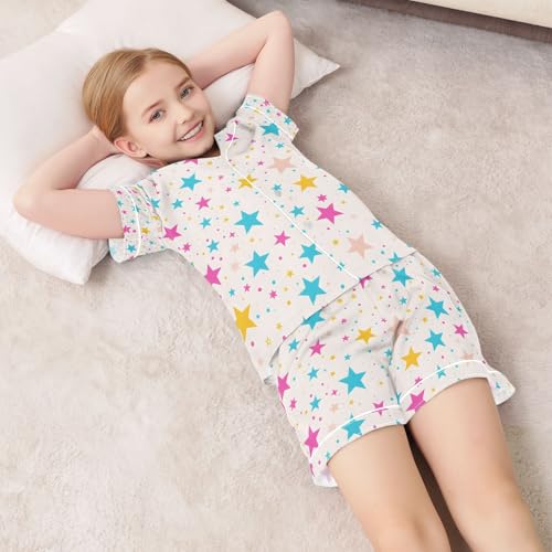 senya Colorful Star A Satin Summer Pajama Sets Silk Short Sleeve Button Down Sleepwear 6