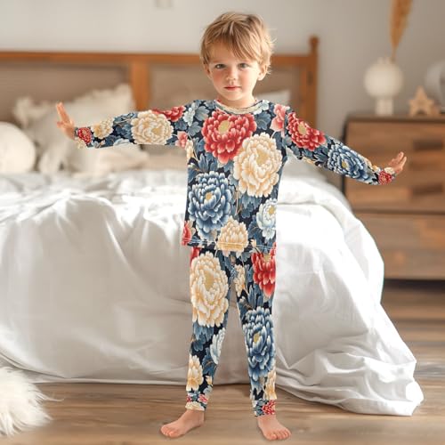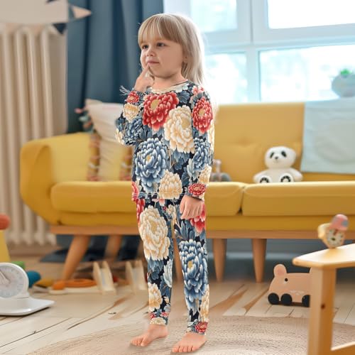 Pajama Sets Long Sleeve Retro Beautiful Flowers Soft Comfy Sleepwear 2 Piece PJS 3-8T 3