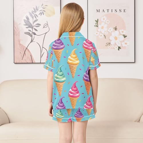 senya Rainbow Ice Cream A Satin Summer Pajama Sets Silk Short Sleeve Button Down Sleepwear 3