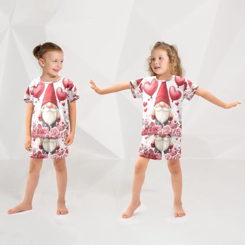 ALAZA Gnomes Rose Flower Balloon Valentines Pajamas Set Short Sleeve Cotton Sleepwear Summer Pjs 2 Piece 5-14Y 5