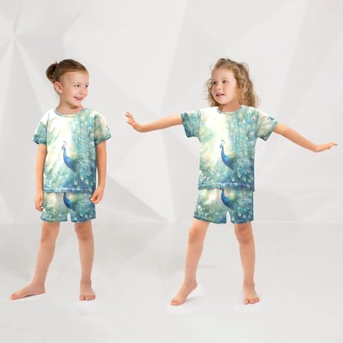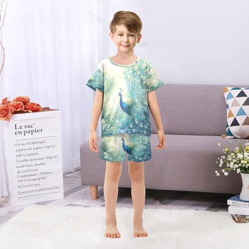 ALAZA Peacock Green Bird Pajamas Set Short Sleeve Cotton Sleepwear Summer Pjs 2 Piece 5-14Y 1