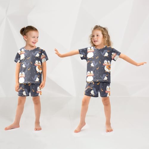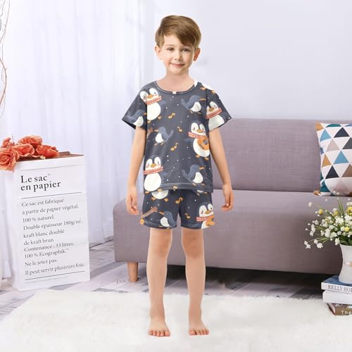 ALAZA Penguin Guitar Music Note Pajamas Set Short Sleeve Cotton Sleepwear Summer Pjs 2 Piece 5-14Y 5