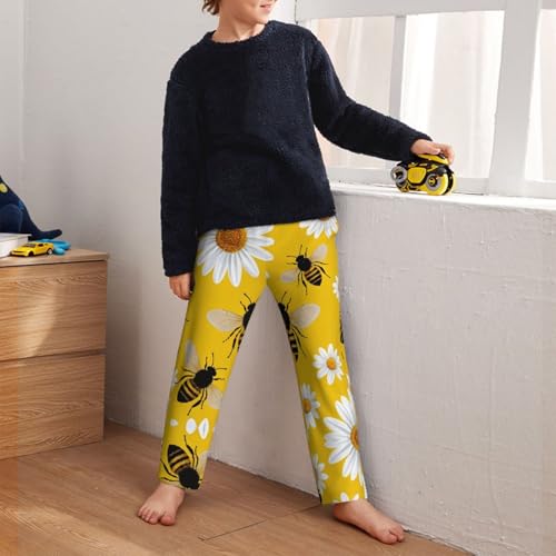 Pajama Pants Pajama Bottoms with Elastic Waistband Sleepwear Lounge PantsAnimal Bee Daisy Flowers 3