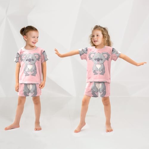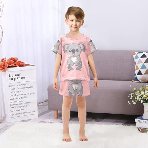 Summer Pajama Set Grey Koala Pink, Short Sleeve Sleepwear Nightwear 1