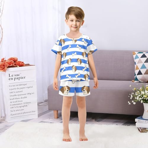 Little Girls 2 Piecing Pajama Set Pj Shorts for Teens Loungewear 8Y Blue White Striped Dog Bone pijama corta para ninos 1