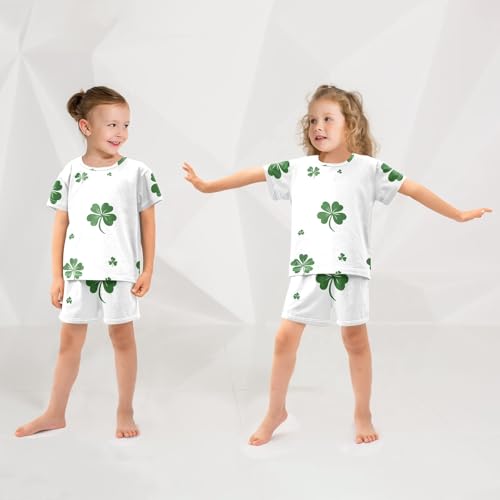 Summer Pajama Set Four Leaf Clover Green Pattern, Short Sleeve Sleepwear Nightwear 2