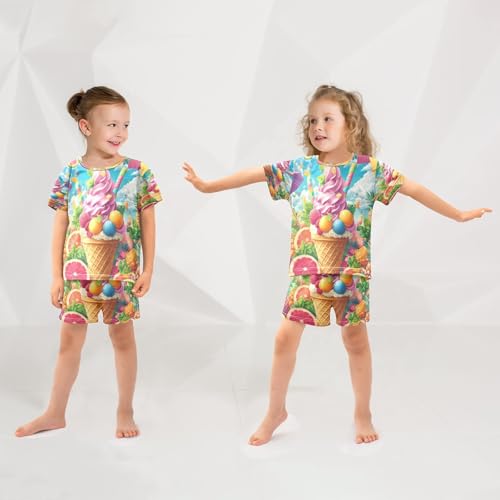 ALAZA Ice Cream Pineapple Orange Lemon Pajamas Set Short Sleeve Cotton Sleepwear Summer Pjs 2 Piece 5-14Y 5