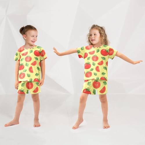Pajama Short Sets Tomato Slice Leaf Pattern Soft Cotton Summer Sleepwear 2 Piece PJS Size 5-14T 6