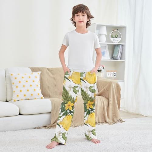Pineapple White Flower Pajama Pants Long Sleep Pant Soft PJ Bottoms Sleepwear 5