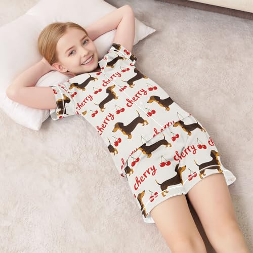 Dachshund Dog Red Cherry Pajamas Set Summer Button Down Sleepwear Pjs Sets Comfy Loungewear 7