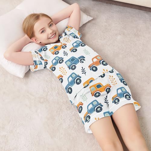 ALAZA Cute Road Car Truck Pajamas Satin Pajama Set Short Sleeve Button Down Sleepwear 3