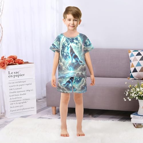 Wolf Moon Blue Pajama Set Short Sleeve Pajamas Shorts Sets Cotton PJS 2 Piece Clothes Set 5Y 6