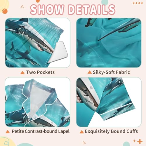 ALAZA Shark Ocean Water Sea Satin Pajamas Set Short Sleeve Button Down Sleepwear Summer Pjs 2 Piece 6