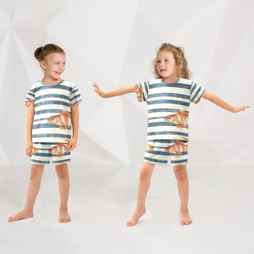 ALAZA Fishes Stripes Pajama Set Short Sleeve Sleepwear Soft Lounge Nightwear 1