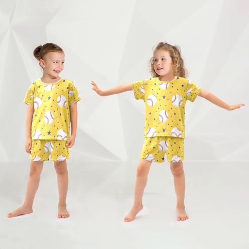 senya Short Sleeve Pajamas Sets Summer Cotton Sleepwear Baseballs Dotsstars Yellow Background 3