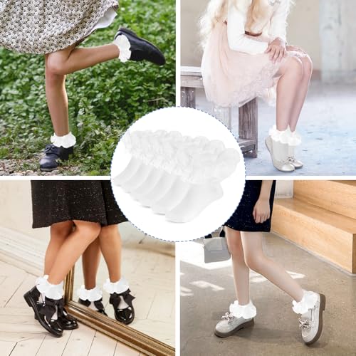 3 Pairs White Ruffle Socks Girls, Big Double Lace Frilly Sock Comfortable Cotton,Cute Girls Ruffle Ssocks 8-10 Years Old Dress And Daily 6