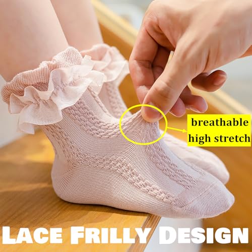 Toddler Girls Lace Ruffle Socks Baby Girl Cozy Soft Cotton Frilly Socks Cute Princess Style Dress Socks 6/5 pairs 6
