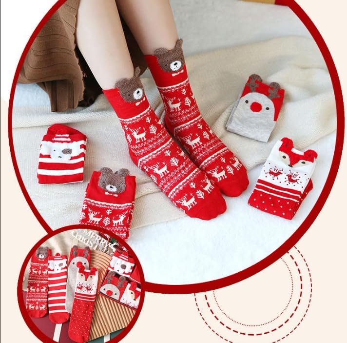 • Festive Gift Set: This adorable 4-pair sock set comes packaged in a delightful Christmas-themed gift box, making it a perfect present for the holiday season.