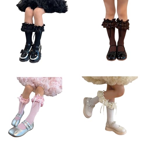 Lace Up Ribbon Bowknot Socks Cotton Midcalf Socks Girl Spring Dress Socks for Little Girls with Ruffle 4