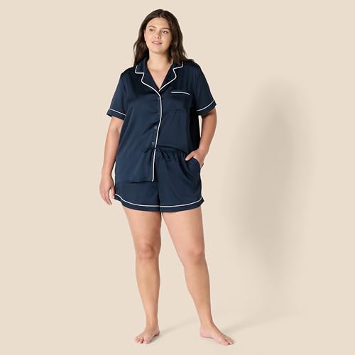 HOT ! Amazon Essentials Women's Satin Short Sleeve Button-Down Top and Short Sleepwear Set