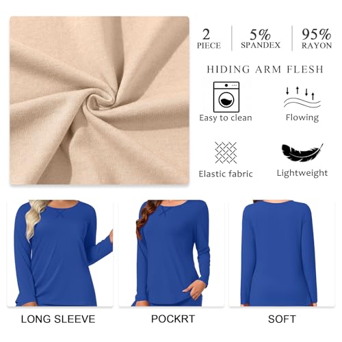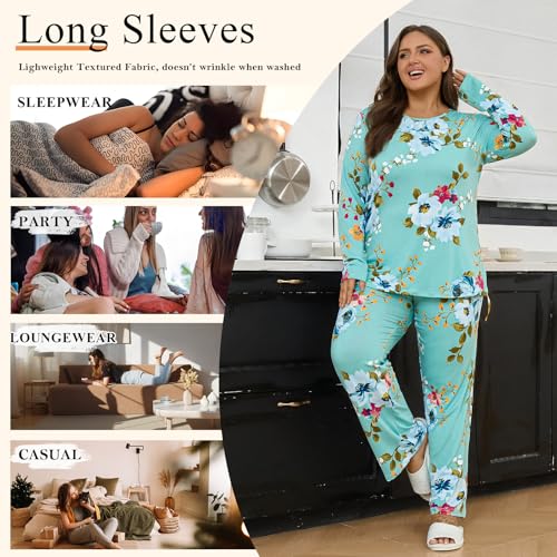 Plus Size Women's Pajamas Sets 2 Piece Long Sleeve Pj Sleepwear Soft Comfy Tops and Pants with Pockets 2