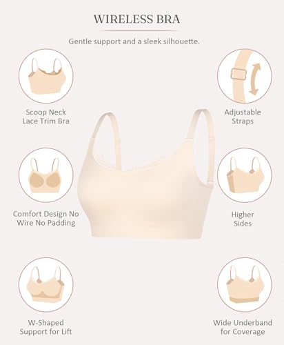 • Comfort Soft Bra: Our everyday bra features a scoop neckline with lace that flatters curves and provides breathable, wire-free comfort, perfect for workdays or everyday wear. Lightweight and seamless, it's the perfect free t-shirt bra—so comfortable, you'll forget you're wearing it. Available in sizes S-3XL, it fits petite to medium to fuller figures. For the best fit, check out our women's bra size guide to make sure you get the right size.