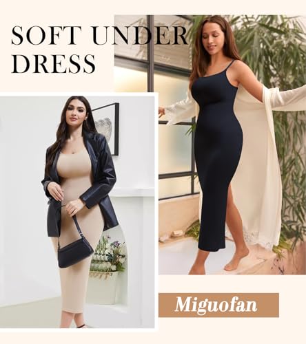 • 【No Rolling Full Body Shapewear】Long cami dress with smooth anti-slip hem and seamless design, make this shapewear slips for under dresses won't roll up with walking or sitting, and the smooth full-slip flatters your whole body and stays in place. A super comfortable fit that hugs your curves, stretchy fabric won't restrict your movements but will enhance your curves and add more definition to your butt, making it look fuller.