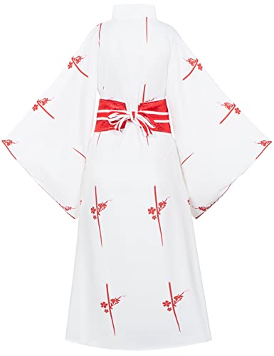 Japanese Anime Women's Kimono Robe Geisha Yukata Sweet Dress Blossom Satin Bathrobe Sleepwear Fans Tabi Socks Set White Sakura 4