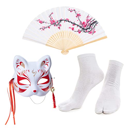 • Package includes: Long kimono robe*1 , Belt*1, Bowknot*1,Hand held flower printing silk folding fans*1 ,Tabi socks*1 ,5-piece set