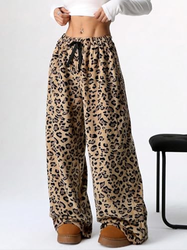 Leopard Pants Women Therian Fuzzy Pajama Pants Y2k Cheetah Pants Grunge High Waisted Fluffy Pants 2