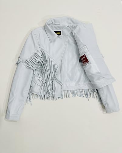 Treegalore Womens Genuine White Lambskin Leather Western Cowgirl Fringe Jacket With Fringe Native American Style 6