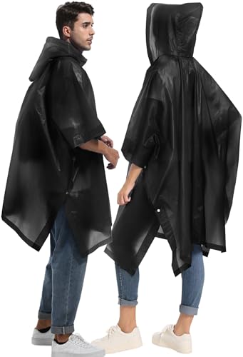 2-Pack Reusable Rain Ponchos for Adults, HOOMBOOM Raincoats Emergency Survival for Women/Men Hood and Drawstring 5