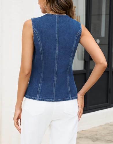 Ladyful Womens Denim Vest Top Sleeveless Jean vest Button Down Western Denim Waistcoat Suit Top 4