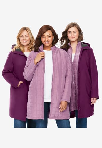 HOT ! Woman Within Plus Size 3-In-1 Hooded Taslon Jacket