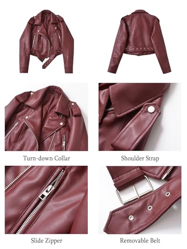 LY VAREY LIN Women Faux Leather Cropped Jacket Vegan Motor Biker Coat with Belt 4