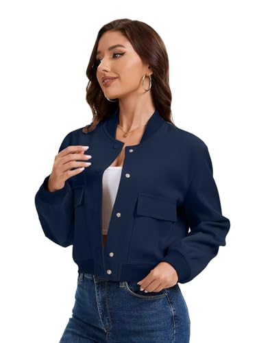 HOT ! imbpceu Women Bomber Jacket Casual Long Sleeve Button Down Varsity Jackets with Pockets