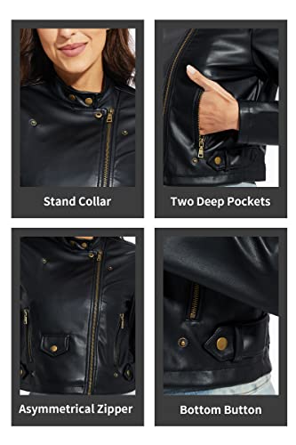 Fahsyee Women's Faux Leather Jackets, Zip Up Motorcycle Short PU Moto Biker Outwear Fitted Slim Coat 1