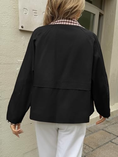 Tankaneo Womens Cropped Jacket Lightweight Casual Zip Up Barn Jackets Fall Contrast Plaid Outerwear Coat 3