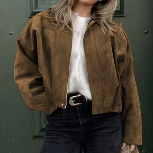 More information about Women's Faux Suede Bomber Jacket Oversized Streetwear Casual Lapel Long Sleeve Motorcycle Jacket 2025 Fall Y2K Coat