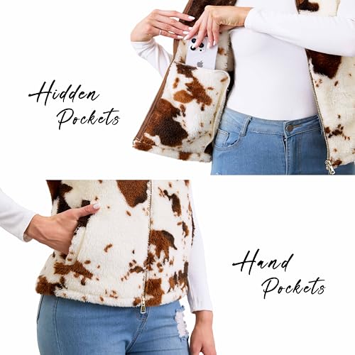 Women's Fuzzy Cow Print Vest Cozy Lightweight Sherpa Fleece Vest for Women Sleeveless Outerwear with Pockets 6