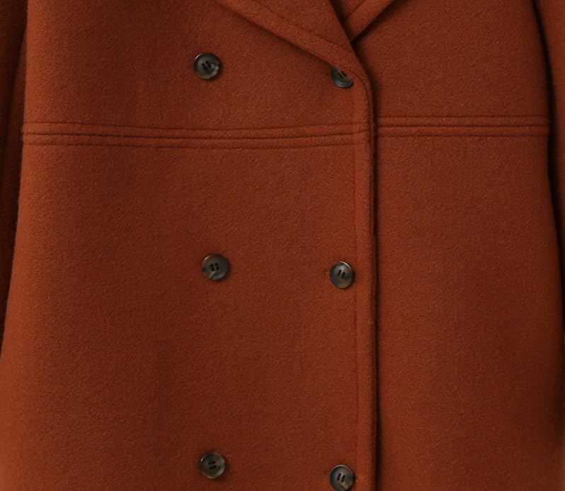 utcoco Women's Wool Blend Double Breasted Pea Coat Notched Lapel Mid Long Trench Overcoat with Pockets 6