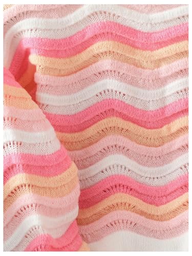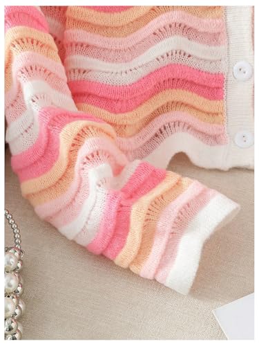 MakeMeChic Girl's Striped Colorblock V Neck Long Sleeve Button Down Knit Cute Cardigan Sweater 6