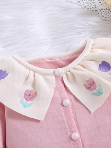 More information about Button Down Knit Sweater with Tulip Collar – Soft Cardigan Style with Decorative Petal Embroidery
